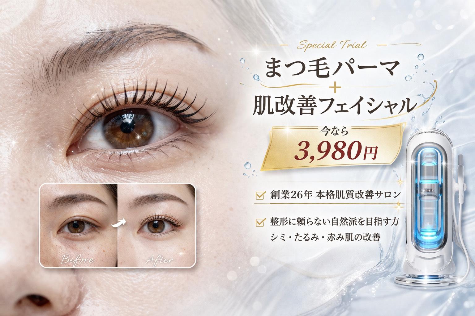 瞼が上がるまつ毛パーマと毛穴洗浄